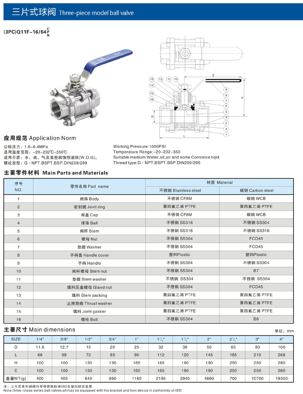 三片式内螺纹球阀 Q11F-16C
